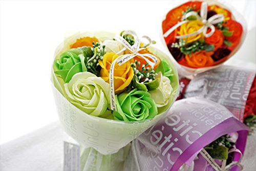 フレグランスソープフラワーは石鹸の素材から作られたほのかな香り付き観賞用のお花です。 生花で問題視されているアレルギーの原因となる花粉やにおいの発生、細菌の繁殖がありません。 水やり・水換えなどの世話をする手間がいりません。 当店は日本の販売業社ですので安心してご利用くださいませ。 海外からの販売は気を付けてお買い求めてください。