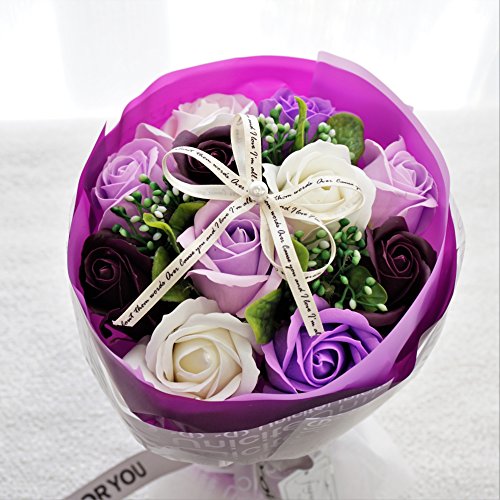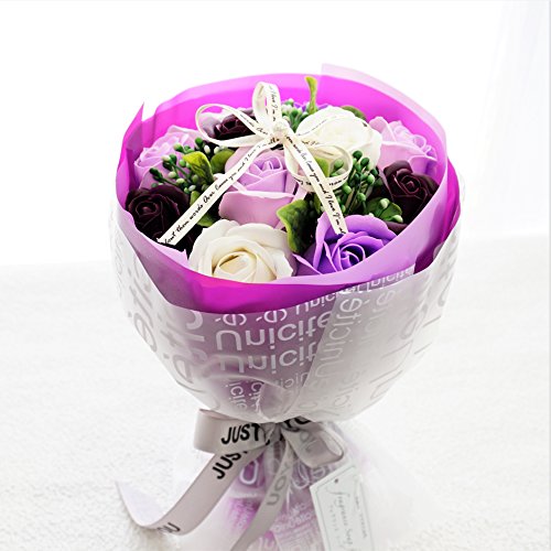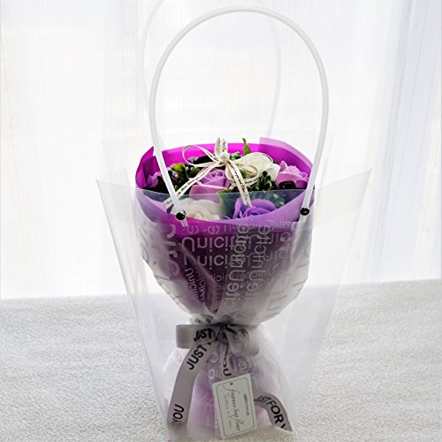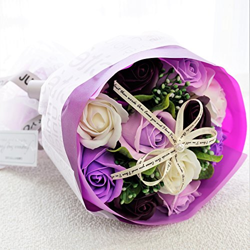 B【セール中】BIO Newローズブーケ 期間限定、在庫限り! フレグランスソープフラワー クリアバック・ギフトボックス付 お祝い 記念日 お見舞い バレンタインデー ホワイトデー 母の日 (パープル)