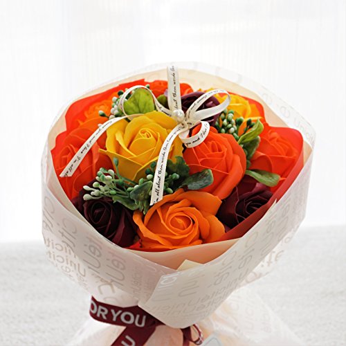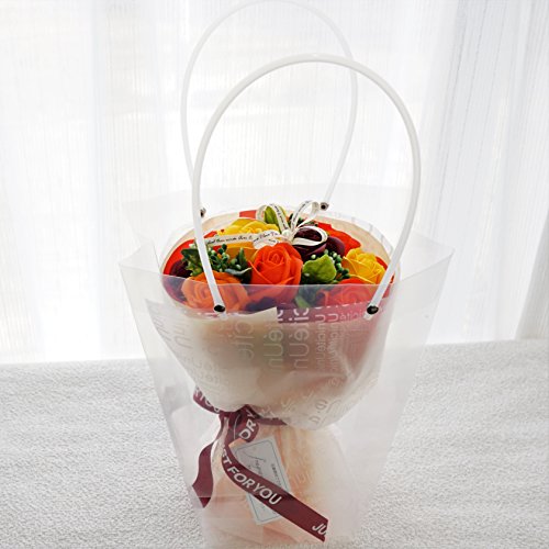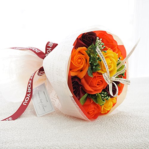 BIO Newローズブーケ フレグランスソープフラワー クリアバック・ギフトボックス付 お祝い 記念日 お見舞い バレンタインデー ホワイトデー 母の日 (パッションオレンジ)