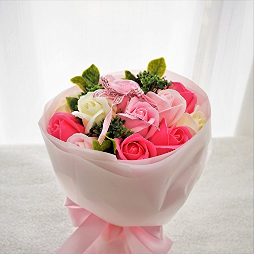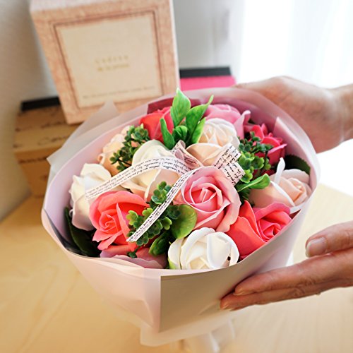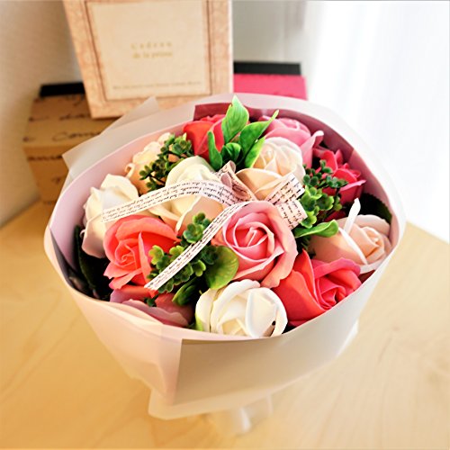 - 人気のローズブーケ ローズ13輪のボリューム感あるアレンジブーケ。他店にはないこだわりのアレンジです 色鮮やかなソープフラワーをふんだんにアレンジ、石鹸の香り漂うソープフラワーをアレンジしました。衛生上持ち込みができない施設(病院)などのお見舞いやプレゼントに最適です。