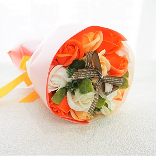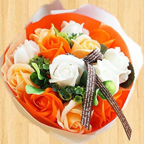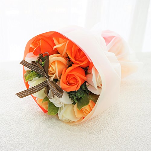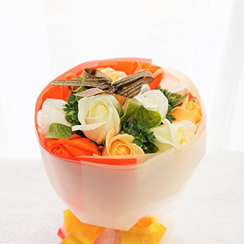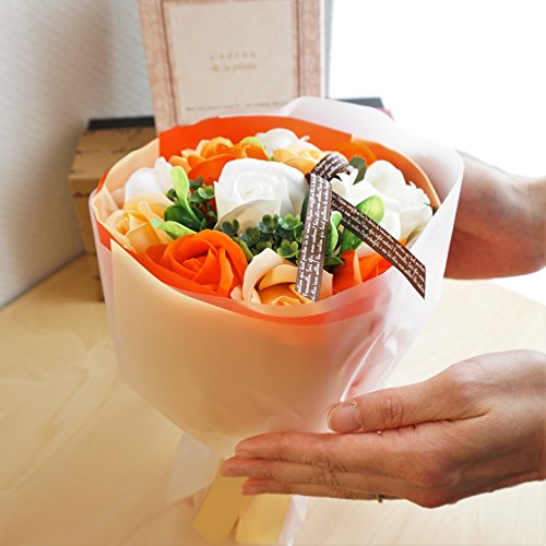 【在庫限りの超特価】BIO ローズブーケ フレグランスソープフラワー ローズ13輪 定番商品 クリアバック・ギフトボックス付 お祝い 記念日 お見舞い バレンタインデー ホワイトデー 母の日 (オレンジ)
