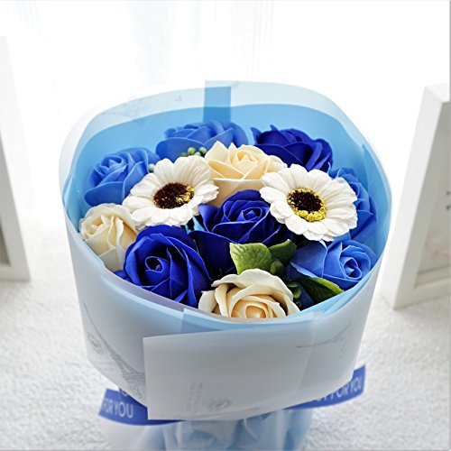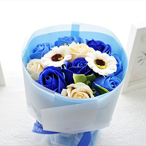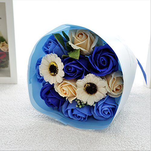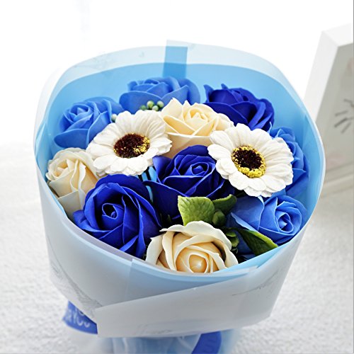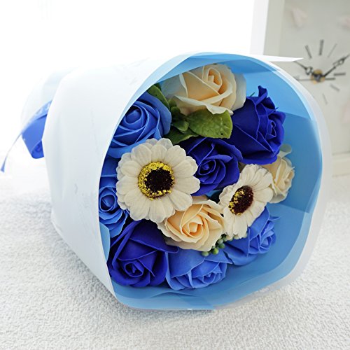 【緊急値下げ】BIO newガーベラブーケ フレグランスソープフラワーを贅沢に使用 クリアバック・ギフトボックス付でお祝いやお見舞い、ギフトにぴったり。(ブルー)