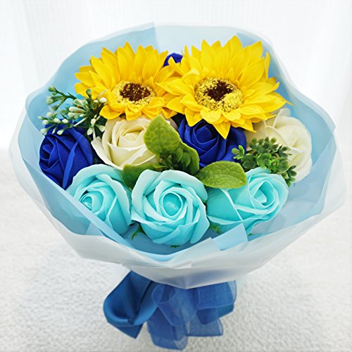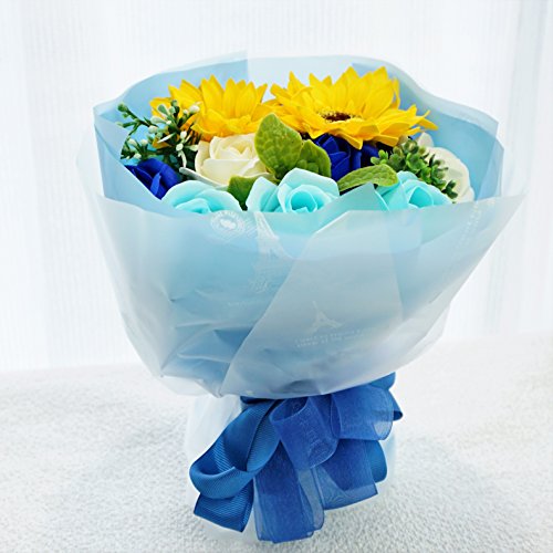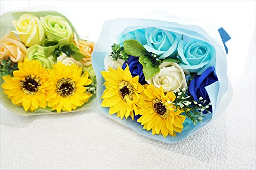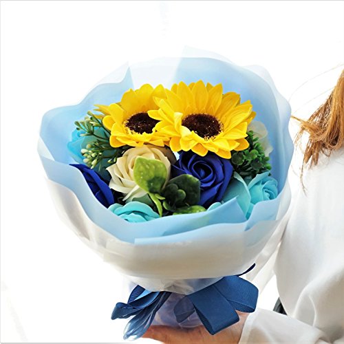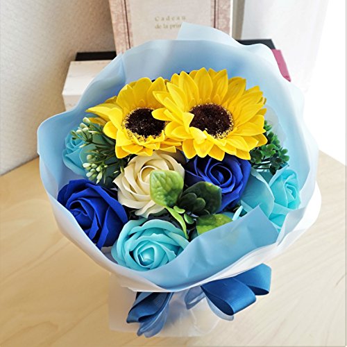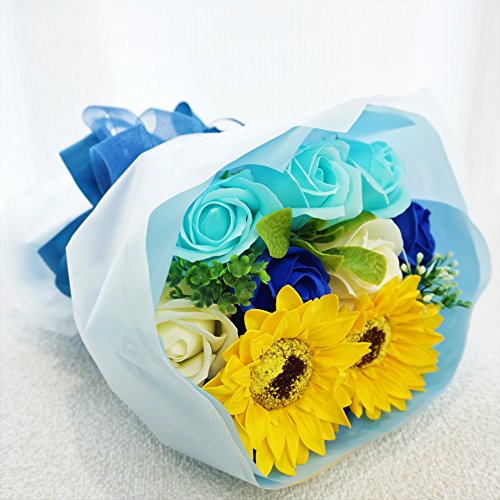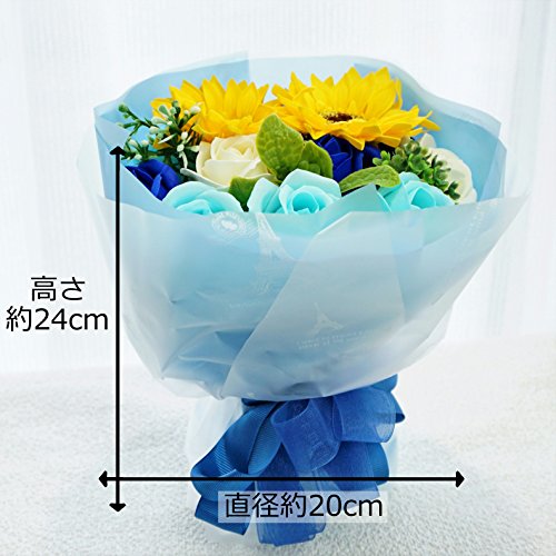 【夏に負けるな!サマーセール開催!】BIO Newひまわりブーケ フレグランスソープフラワー 12輪 クリアバック・ギフトボックス付 お祝い 記念日 お見舞い バレンタインデー ホワイトデー 母の日 (ブルー)