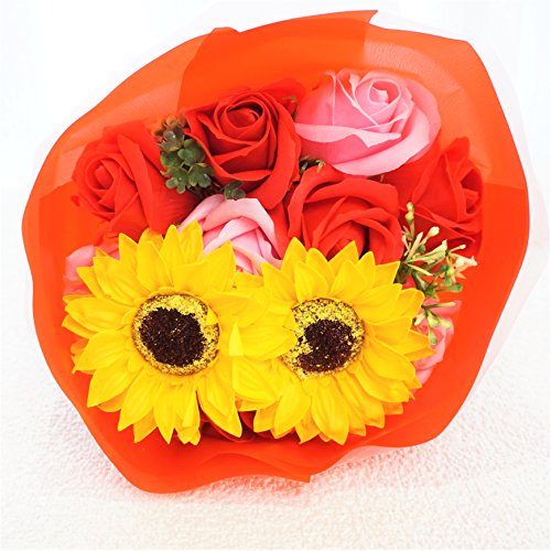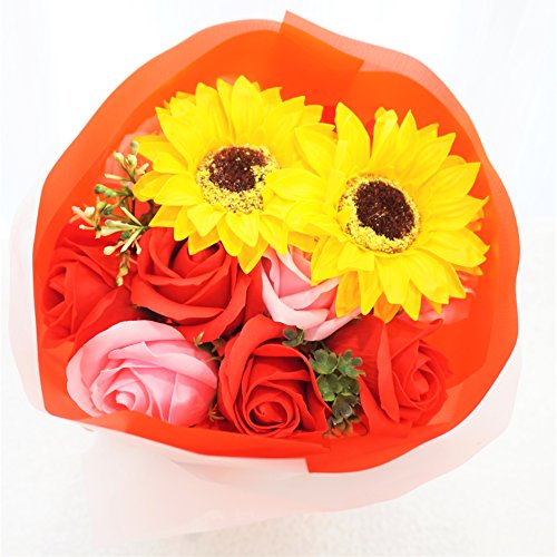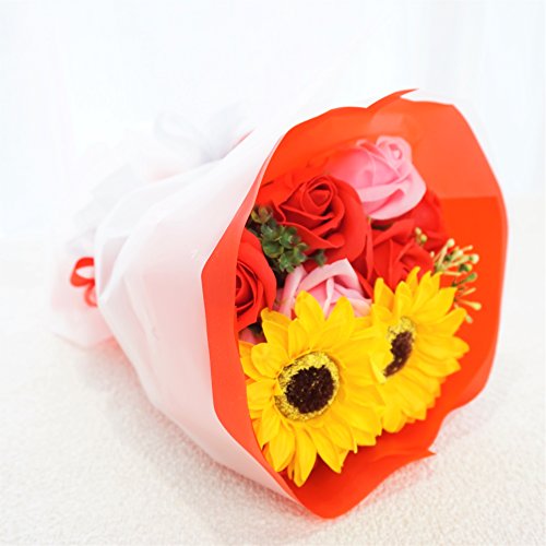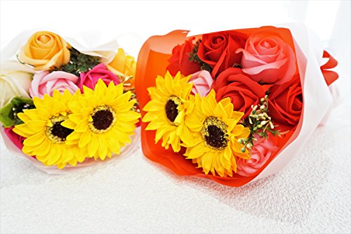 - Newひまわりブーケ ローズ10輪、ひまわり2輪の新しいアレンジブーケが販売開始となりました。他店にはないこだわりのアレンジです 色鮮やかなソープフラワーをふんだんにアレンジ、石鹸の香り漂うソープフラワーをアレンジしました。衛生上持ち込みができない施設(病院)などのお見舞いやプレゼントに最適です。