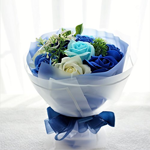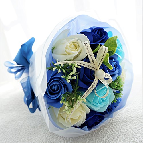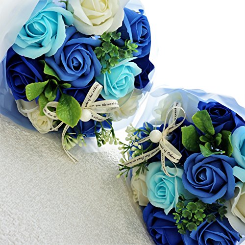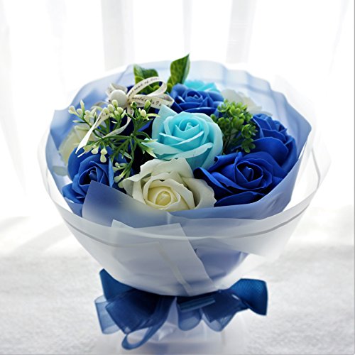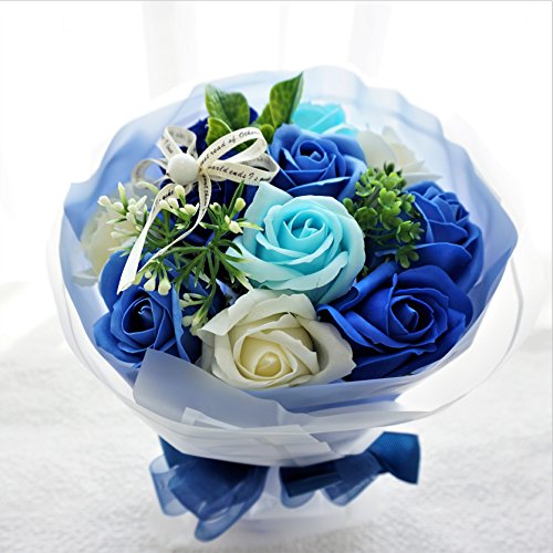 BIO エレガントローズブーケ フレグランスソープフラワー 緊急値下げ!売り切り企画!ローズ11輪 ボリューム定番商品 クリアバック・ギフトボックス付 お祝い 記念日 お見舞い 父の日 母の日 お中元 (ブルー)