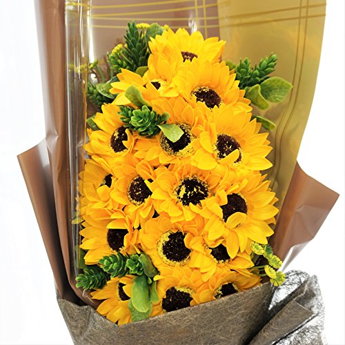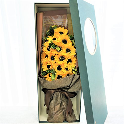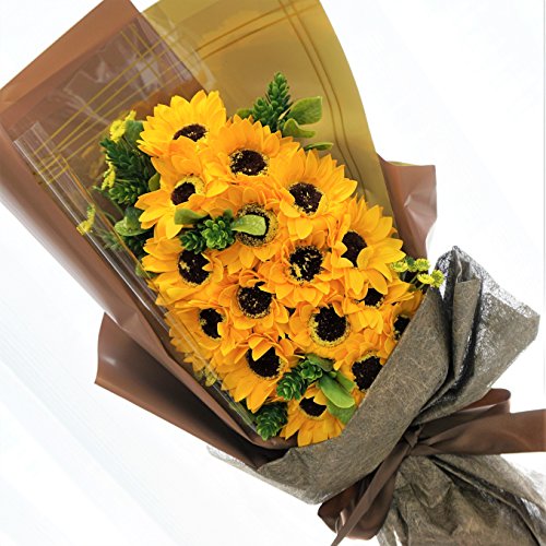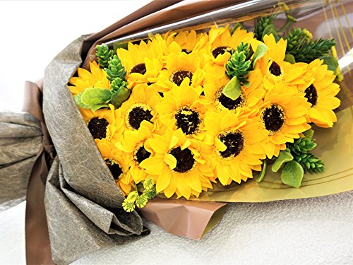 【お中元ギフト】BIO NEWデラックスひまわりブーケ フレグランスソープフラワー 豪華ボリューム お祝い 記念日 お見舞い サマーギフト 帰省 お盆 敬老の日 お中元 (イエロー)