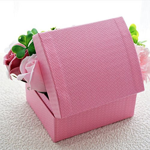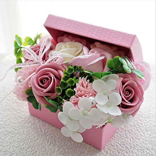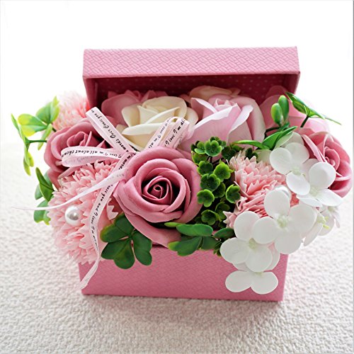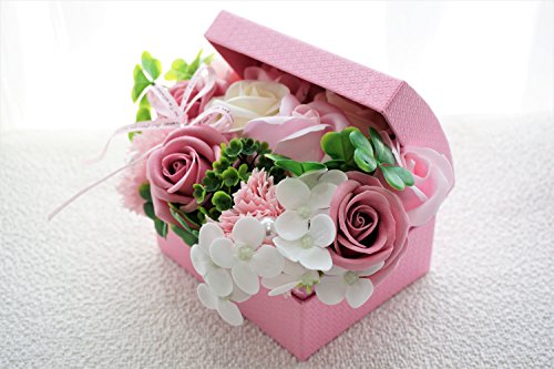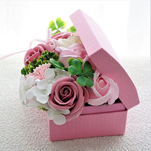 BIOフレグランスソープフラワー オープンボックス フタ付ボックス お祝い 記念日 お見舞い 母の日 ホワイトデー バレンタインデー (ピンク, ミニ)