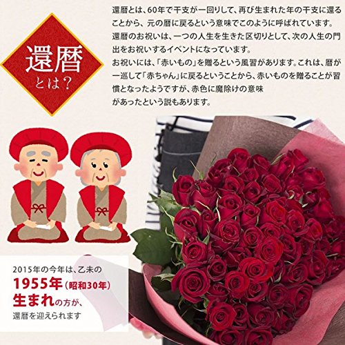 - 誕生日には年齢の本数を、大切な方の還暦祝いには、赤いバラの花束60本がおすすめです。