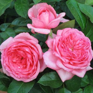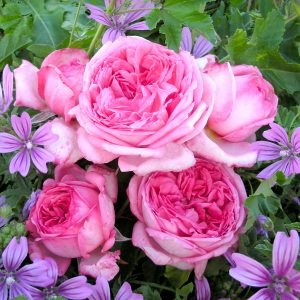ロゼット咲きブライトピンクの大輪ロゼット咲き。 芳香性。シュラブ型の樹形でショートクライマーとしても仕立てられる。