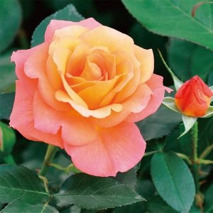 悲劇の運命を辿ったアンネ・フランクを偲んで名付けられたバラ。アプリコットとピンクの混じりあった色はとても美しい。強健種。