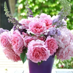 フリルと切れ込みの入る花弁が印象的なピンクの大輪ロゼット咲き。強香性。四季咲きのショートクライマーとしてアーチやオベリスクにも向きます。ビアンヴニュとは、フランス語で「ウェルカム、ようこそ!」の意味。