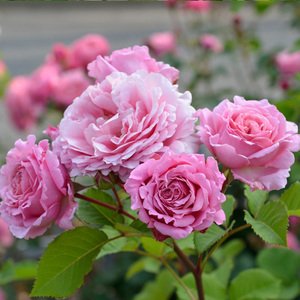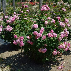 - 花弁色:赤・ピンク。咲き方:四季咲き。芳香の強さ:強香。花形:ロゼット咲き。花径:8~10cm。樹高:1.8m×1.2m。樹形:シュラブ。