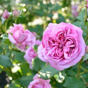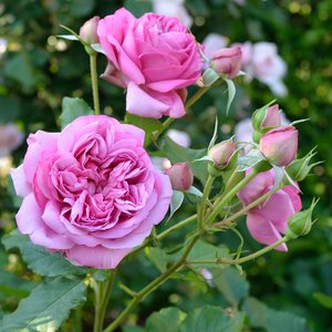 - 作出国:フランス 。花弁色:ピンク。咲き方:四季咲き。樹高:幅 : 1.5m×1.2m。樹形:シュラブ。花径: 10~12cm。花形: ディープカップ~ロゼット。香り: 強香
