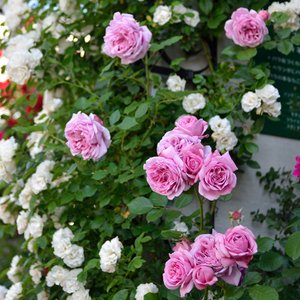 - 艶やかなポンパドゥールピンクのカップ咲きから、開くにつれ淡いラベンダーピンクのロゼット咲きに変化する。特に魅力的な芳香品種のひとつ。淡い緑の枝葉は繊細に見えるが耐病性が強く良く茂る。四季咲きのショートクライマーとしてアーチやオベリスク仕立てにすると魅力を最大限に発揮する。強剪定にも耐えるので鉢植えでも楽しめる。名はロココ時代に伯爵夫人が好んだ「ポンパドゥールピンク」から。