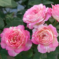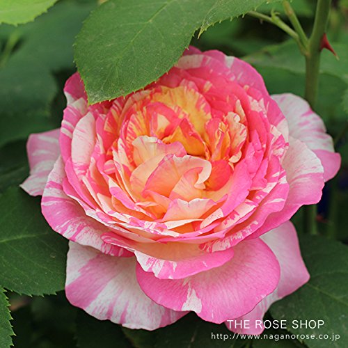 - 作出国:フランス 。花弁色:ピンクと白の絞り 咲き方:四季咲き。 芳香の強さ:中香 花形: カップ咲き~ロゼット咲き 花径:10cm、大輪 樹高:1m×0.8m、ブッシュ