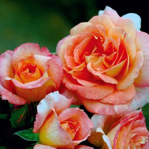 - 咲く時期によって、銅色がかる優しいピンクの花から暖色の杏色に変化する、個性的な花が楽しめる品種。照りのある濃い緑色の葉群が、より花色を強調します。繰り返し咲く花は、芳香豊か。日当たりを好みます。