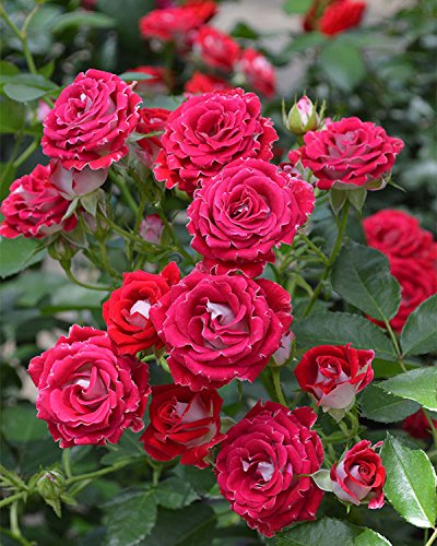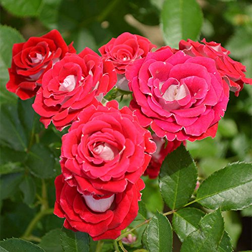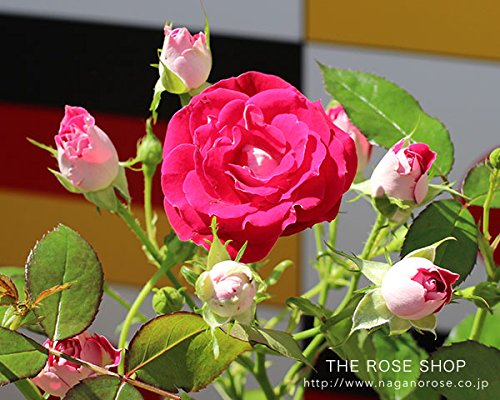 ストロベリーレッド&ホワイトが色鮮やかで、一房に10輪以上蕾を付けるので、花束のようです。名付け親は脚本家倉本聰氏で、ドラマ「風のガーデン」ヒロインの弟・岳(がく)の名を冠しています。「ここでガブリエル様※に会うことです。」(※作中で岳が大天使ガブリエル様と思い込んだ実の父親(演・中井貴一氏))うどん粉病・黒点病に強く、耐寒性・耐暑性のある品種です。2009年ADR、他多数受賞。 素晴らしいドラマに捧げるバラに相応しく、大変優れたバラです。花が美しいというだけでなく、丈夫で非常に育てやすいです。ヨーロッパでさまざまな賞を受賞しており、それが証明されています。