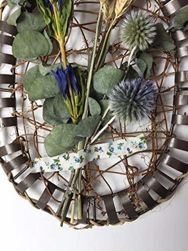 - 資材: リース台 ドライフラワーなど 小花プリントのクロスなど。大きさ:リース台 縦25センチ 横21センチくらい(手作りのため多少の大きさは変わります。)