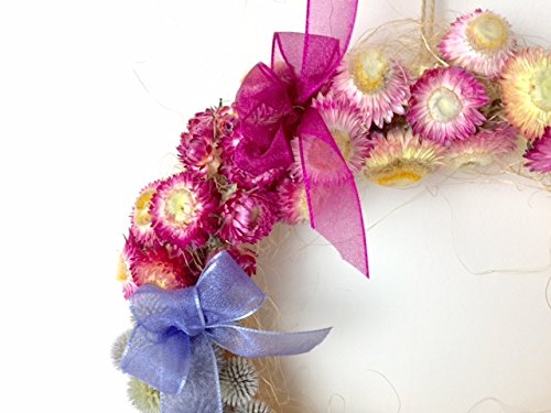 帝王貝細工とルリ玉アザミのグラデーションリース (ドライフラワー)