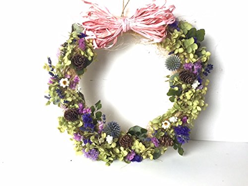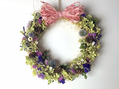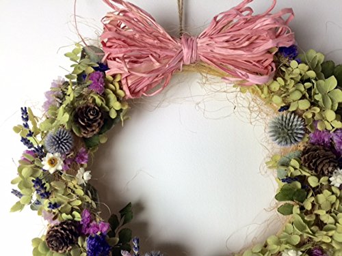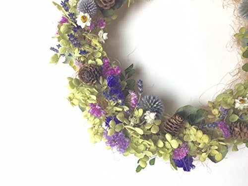 - 資材 リース台 シサル麻 旬のドライフラワー、ルリ玉アザミ、松かさ、アジアンタム スターチス、ラベンダーなど 大きさ リース 直径 26センチくらい (手作りのため多少の大きさは変わります。) ※ご注意ください こちらは1点ずつ手作りをしており、画像イメージと若干変わる場合も ございます。天然の資材のため都合により材料は変わる場合もございます。 こちらは屋内専用です。 外に飾ると雨風より破損する場合もございますので避けてください。