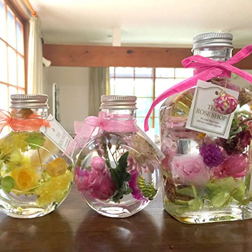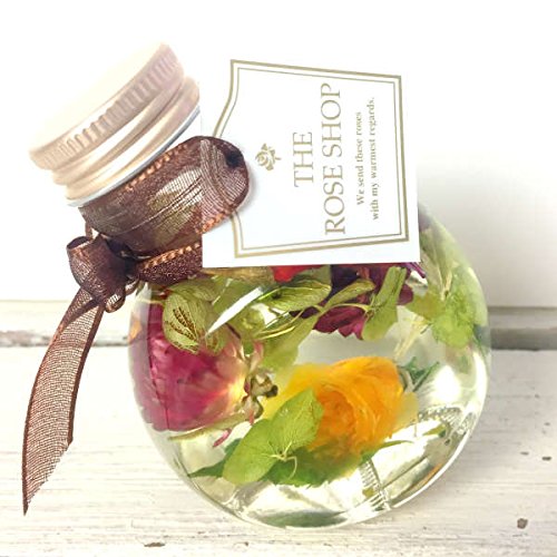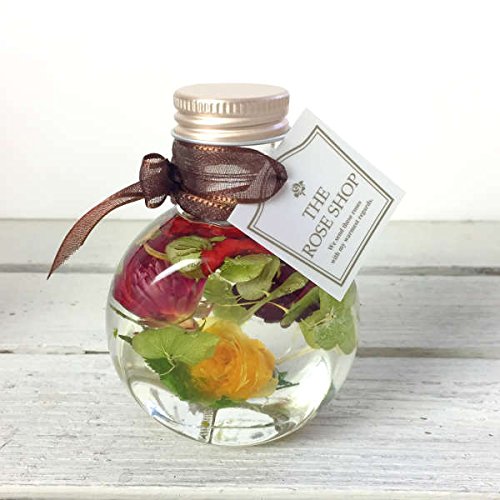 - 「ハーバリウム」とは、「植物標本」の意味です。専用の透明な液体の中に乾燥処理を施した草花などを瓶詰めしたフラワーインテリアです。 プリザーブドフラワーやドライフラワーをガラスのボトルに入れて、 専用のオイルに浸すことで、みずみずしい状態でお花や植物を鑑賞していただける新感覚のインテリア雑貨です。 みずみずしい状態はお手入れ不要で、約1年以上持続できます。 直射日光や高温多湿な場所は避けたほうが長持ちします。ザ・ローズショップのハーバリウムは、保湿剤の基剤として使用されている、お肌への刺激が極めて少ない安全なオイルを使用しています。 引火点が260℃のものを採用しているため、常温では燃えないきわめて安全なオイルで安心です。