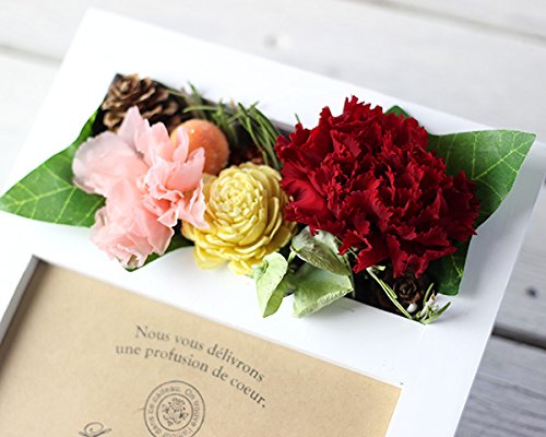 写真を1枚収納できる写真立てです。ブライダルのお祝いや赤ちゃんのお祝いにお勧めです。個別のメッセージも承ります。届いてそのまま飾れるので、雑貨感覚で気軽に お花がある生活を楽しめるアレンジメントです。数量限定アイテムカーネーションのプリザーブドフラワー入り ラッピングしてお届けします。