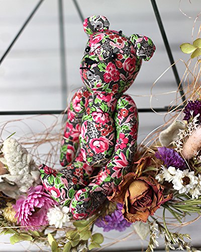 英国リバティプリントのベアー付きフラワーリース ピンクベアー ドライフラワー バラ ギフト