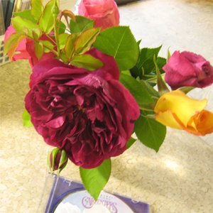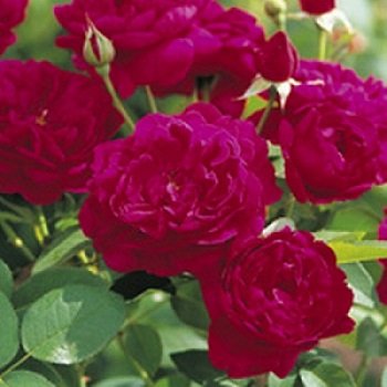 - 作出国:イギリス。作出年:2006年。花弁色:クリムゾン。咲き方:四季咲き。樹高: 100×90cm。樹形: ブッシュ。花形: 中輪 ロゼット咲き。香り: 強香。