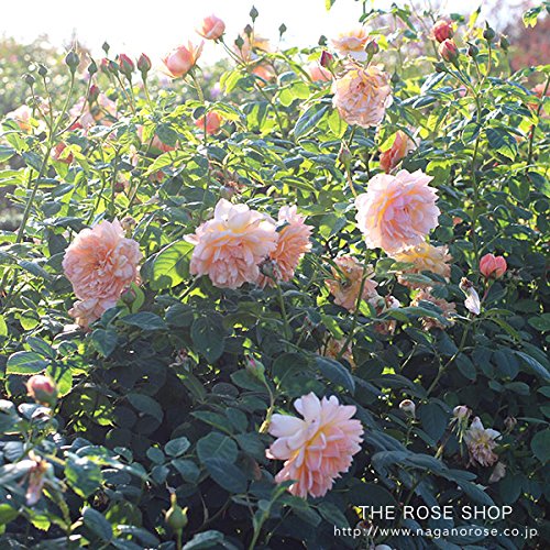 - 作出国:イギリス。作出年:2001年。花弁色:アプリコット。咲き方:四季咲き。樹高:100×100cm。樹形:開帳型。花形:中輪ロゼット。香り: 強香。
