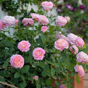 - ピンクに淡いオレンジイエローの絞りが入るロゼット咲き大輪バラ。独特の華やかさとかわいらしさを併せ持った、魅力的な品種です。ローズをベースにスパイシーとフルーティーの混ざる強香花。極めて四季咲き性と耐病性の強い中型シュラブで、鉢植えにも向くコンパクトな樹形です。名は、印象派を代表するフランスの画家クロード・モネに由来しています。(作品はWikipediaで見られます)モネと言えば睡蓮をモチーフとした絵が有名ですが、モネの庭にはバラも広がっていて、晩年にはバラの絵もいくつか描いています。かわいらしい色で育てやすいバラ。絞りには珍しい強香なのも嬉しいポイントです。