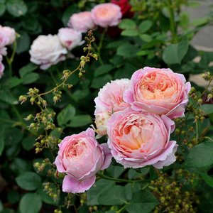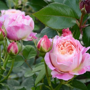 - 作出国:フランス。花弁色:黄・ピンク絞り。咲き方:四季咲き。樹高:幅 :1.0×0.8m。樹形:シュラブ。花径: 8cm、大輪。花形: ロゼット咲き。香り: 強香