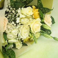- パステル系のばらでおつくりしたおしゃれなブーケタイプの花束です。和風のラッピングでモダンな感じに仕上げました。このまま花瓶に挿せるので便利です。