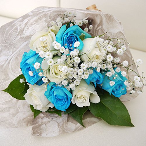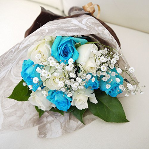 バラの花束 水色のバラと白いバラの花束 パシフィックオパール10本 ブルーローズ フラワーギフト