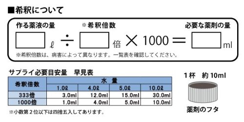 - 散布液10リットル当たりの使用量:10~30ml、説明書付き