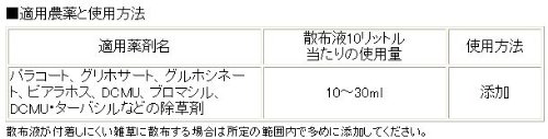 - 除草剤のための機能性展着剤。芝生用に使う除草剤と一緒に使ってください。