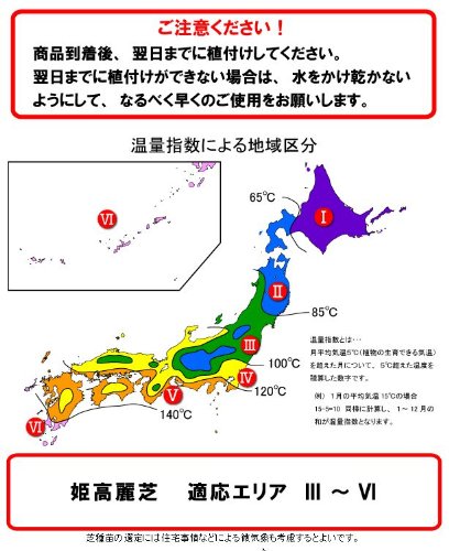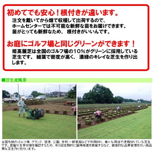 - 【苗】姫高麗芝(暖地型芝) 【生産地】茨城県 【内容量】張り芝(約0.28m×約0.36m×20枚)約2平米(0.6坪)分【植付け適温】気温25度前後(3~10月頃)