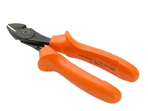 ●1000V絶縁仕様です。1本で2役、軟線(銅・ケーブルより線等)切断は刃先で、硬線(ピアノ線等)の切断はジョイント近くの刃底で切断します。ジョイント部はリベット式ではなく、強力スクリュージョイントです。欧州規格EN60900適合品です。電気工事などに使用します