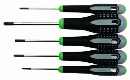 5 pieces;All Torx screwdrivers;Three component ergonomically designed handle provides comfort and maximum grip even with oily hands;Designed for maximum comfort and strength;Chrome blades prevent corrosion and can be easily cleaned