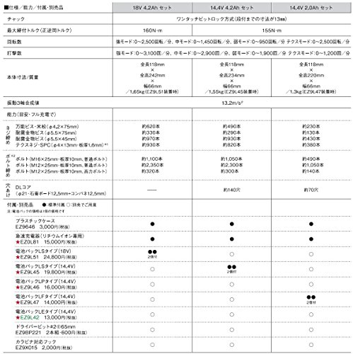 - 付属品:プラスチックケース EZ9646、急速充電器 EZ0L81、電池パックLSタイプ EZ9L51(2個)