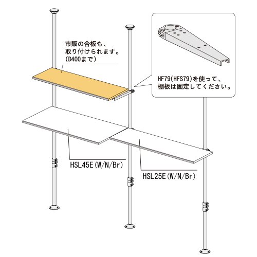 ヒガシ HPシリーズ HF79 突っ張り収納システム 棚受けブラケット 取付金具色:黒