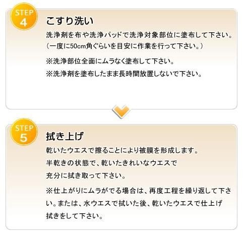 【特長】 チョーキングを修復し新たな汚れも防止します。素材に塗って拭きあげるだけでチョーキングした素材の質感を修復し、フッ素皮膜が程よい光沢を生み出します チョーキングを修復し新たな汚れも防止します。 素材に塗って拭きあげるだけでチョーキングした素材の質感を修復し、フッ素皮膜が程よい光沢を生み出します。このフッ素皮膜が新たな汚れの付着を強力に防止する画期的なクリーン&コーティング剤です重量:1kg