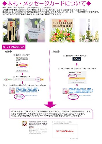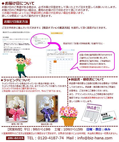 - ◆料金に含まれるもの◆料金には「造花、梱包料、配送料、メッセージカード」が含まれております。メッセージカードをご希望の場合は、「ギフト設定」にチェックを入れていただいた上でご注文にお進み下さい。※ご注文後の追加をご希望の場合はメールまたはお電話にて承ります。