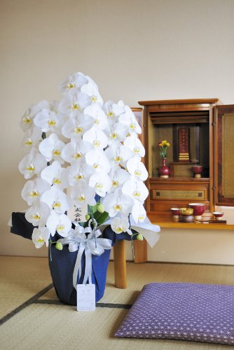 - 厳選の生産者より直送する鮮度抜群の胡蝶蘭をお悔やみ用にアレンジしました。ご仏壇やご霊前にお供えすると豪華な見栄えがいたします。