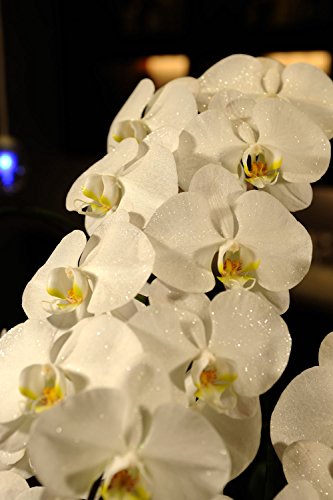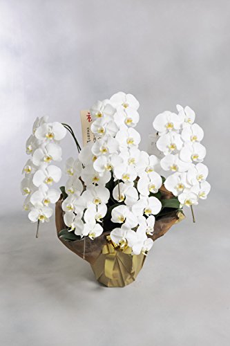 - ◆商品について◆天然ダイヤモンド(0.2ct)入りのラメスプレーを花びらに施しているため、照明の光が反射しラメがキラキラと輝きを放つ、ジュエリーのような胡蝶蘭です。※お花に触れた場合ラメが取れてしまう場合が御座いますのでご注意下さいませ。 【サイズ】高さ:約90cm程度 横幅:約60cm程度 大輪直径:約10~12cm程度 【輪数】1本あたり9輪以上 合計27輪以上 ※つぼみ含む