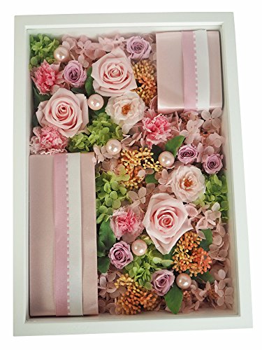 春の優しい風景をそのまま額縁に閉じ込めました。まるで春の花壇に可愛く咲き誇るよう!パステルカラーでまとめ上げ、同色のリボンがポイントアップ。贈り物にもぴったりです。ガラスふた付額縁アレンジの為、埃の心配もありません。後ろには金具付、付属で紐もついていますので壁掛けにもできます。また、レイアウトは縦でも横でも可能です。優しい色使いの絵画のようにお部屋をドレスアップします。
