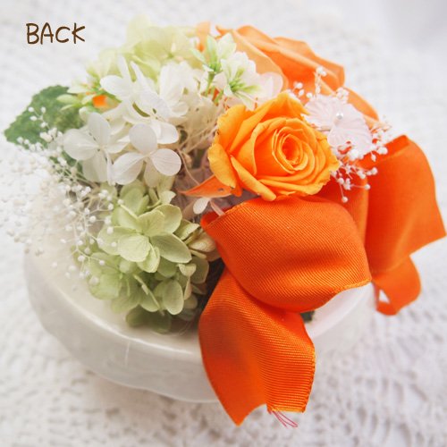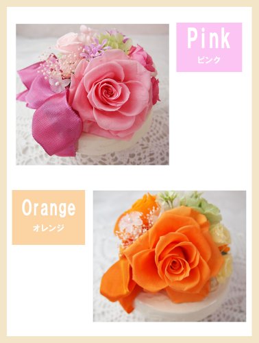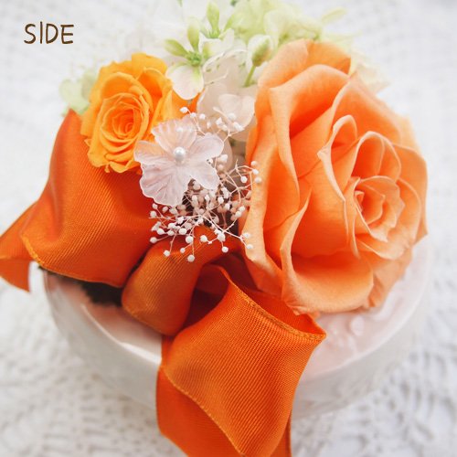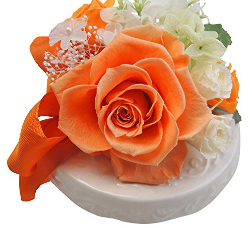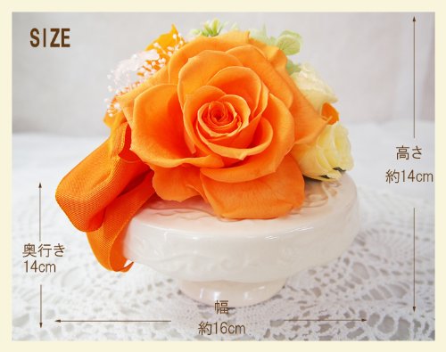 フラデコ 枯れないお花 プリザーブドフラワー【プリエ】台座にのった大輪ローズアレンジ (オレンジ)