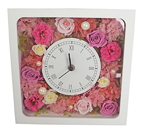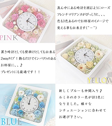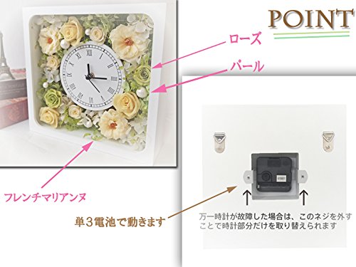 大人気時計シリーズ!真ん中にある時計をプリザでびっしりと囲み華やかなデザインに♪2wayタイプになってるので壁掛けにも置き時計にも出来ます!