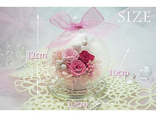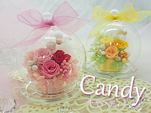 ガラスドームシリーズ!新しくなって登場です!! まるでキャンディのように可愛らしいデザイン!ローズと紫陽花も入りボリューム感も間違いなし♪ ふんわりとしたリボンもポイントです♪