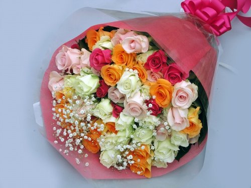 - お花のカラーはミックス、レッド、ピンク、ホワイト、オレンジとございます。お花の色にご希望がある場合はメールにてご連絡ください。