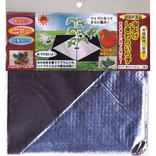 ●【商品説明】●「FOREST 虫よけしきわらいらず SUPER 2枚入」は、光の反射を嫌うアブラムシやコナジラミなどの害虫対策用シートです。●害虫よけの他、雑草や乾燥の防止、生育向上に役立ちます。●【使用方法】●(1)シートを敷く部分を平らにならします。●(2)アルミ面を上にして、シートを敷きます。●(3)シートの淵を割りばしやシートピンなどで風に飛ばされないようにしましょう。●【材質】●ポリプロピレン、ポリエステル、アルミ蒸着PE●【原産国】●日本●まとめ買いの場合、システムの仕様で個数分の送料が加算される場合がありますが、送料は1配送先につき1個分の金額となります。●システムの仕様で配達日を指定出来る場合がありますが、配達日の指定は出来ませんのでご了承ください。尚、時間指定は出来ます。●ご注文確定後のキャンセルならびに、お届けしました商品のお客様都合による「返品 交換」は行っておりません。